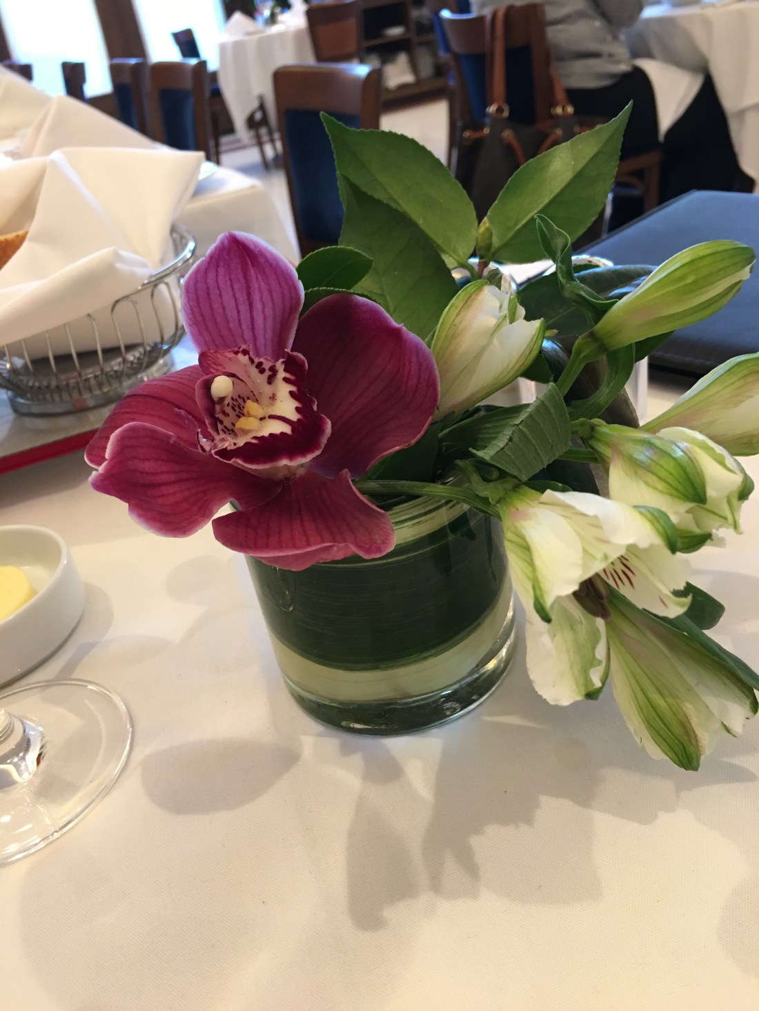 The Denver restaurant is located at 3rd Ave. and St Paul in Cherry Creek. Valet parking is available as parking is very tight in this neighborhood. It’s a large and open restaurant with extra outdoor seating and a lounge area. The kitchen is hidden behind closed doors– which is not my favorite. Of course the tables have white table clothes and a pretty flower arrangement.
