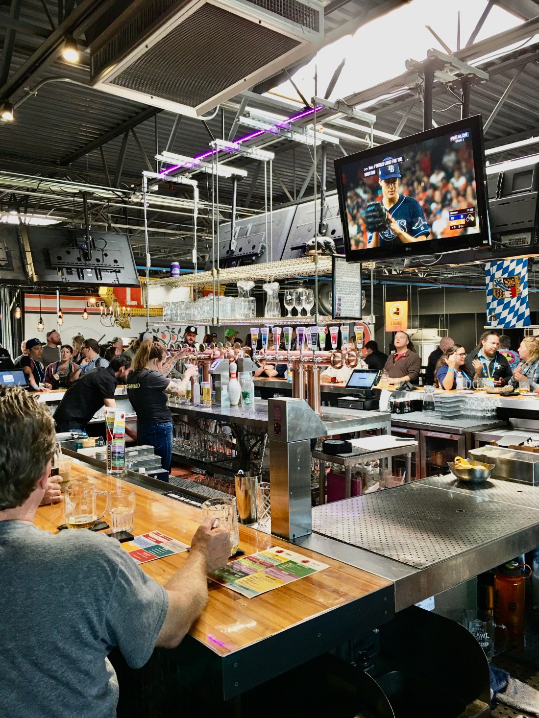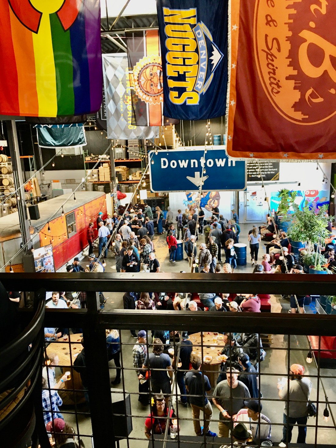 This week, it’s the Great American Beer Festival in Denver, so there were many guests of the brewery present. There is a bar and food service upstairs. Stay away from the food. I had the “Big Ass Pretzel” and it lacked taste, texture, and salt. Remember, this is a brewery and enjoy the “Slow Pour” and call it a day.