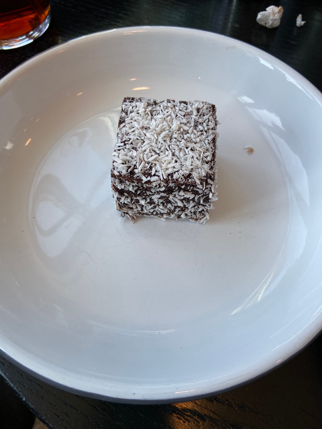 The chicken with gravy was delicious. The added Chook seasoning salt was the difference in adding flavor and spice to the chicken. The bowl of charred veggies had too much cauliflower. It could use some beets or squash to soften the bowl. The plate of pulled chicken sliders were just OK as they lacked great flavor. The beers were very good. The dessert was a yellow cake with chocolate and coconut frosting. Very good and only $4.