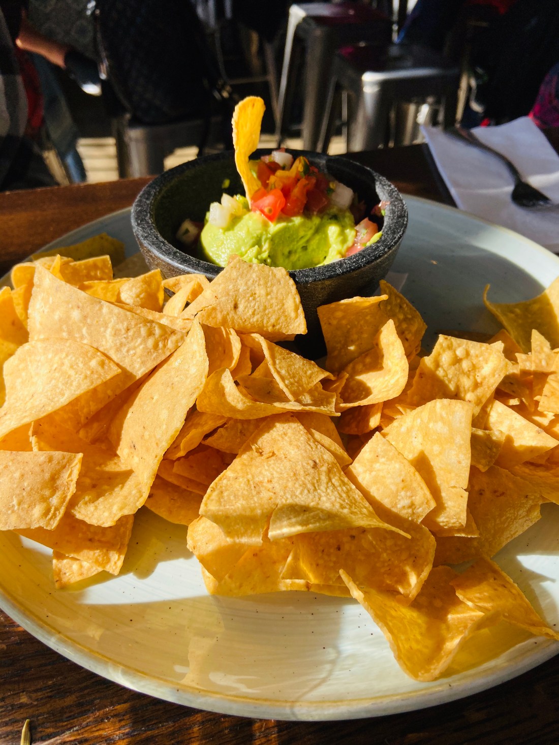 We started with a couple of margaritas ( Purist- just tequila , lime juice and agave) and a Pinche Paloma, a margarita made with grapefruit juice. Next, chips and guacamole. An excellent way to start the meal as the guacamole is bright green and delicious.
