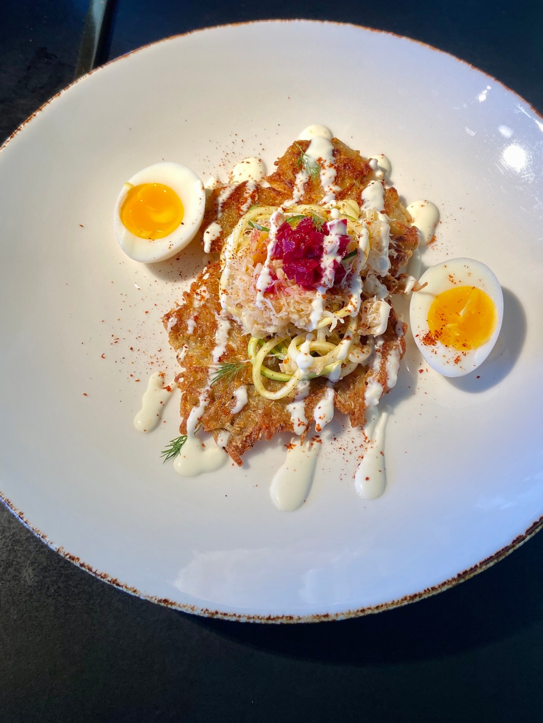The shrimp and grits has a great garlic flavor that made it the best brunch dish. Number two was the Moroccan Pancakes. Lots of sweet filling. Sadly, the Iberico Ham and the Crab dishes were missing an important ingredient, flavor. Crab and fancy ham should be much better and they were the two most expensive dishes. The presentation of all four dishes exceeded the taste and flavor of any of them.