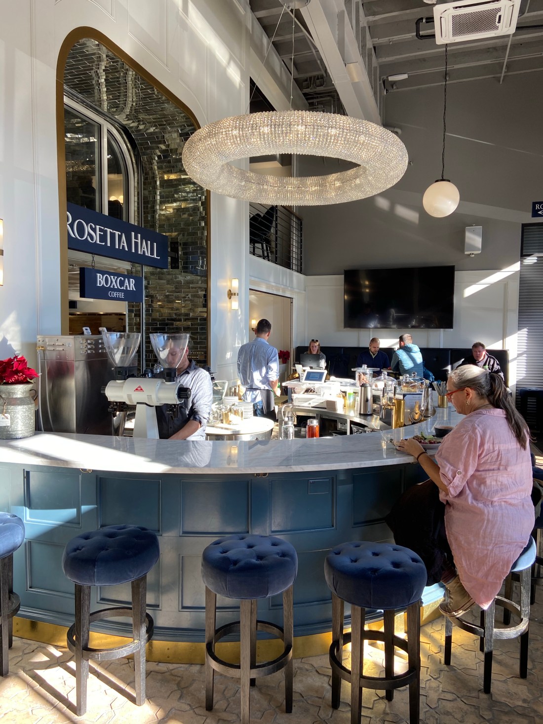The front area coffee bar serves Boxcar coffee. The large 48 seat bar inside the entry is called Rosetta’s which supplies you with a large selection of wine, beer, or cocktails. In the summer they will have an outdoor lounge area up on top.