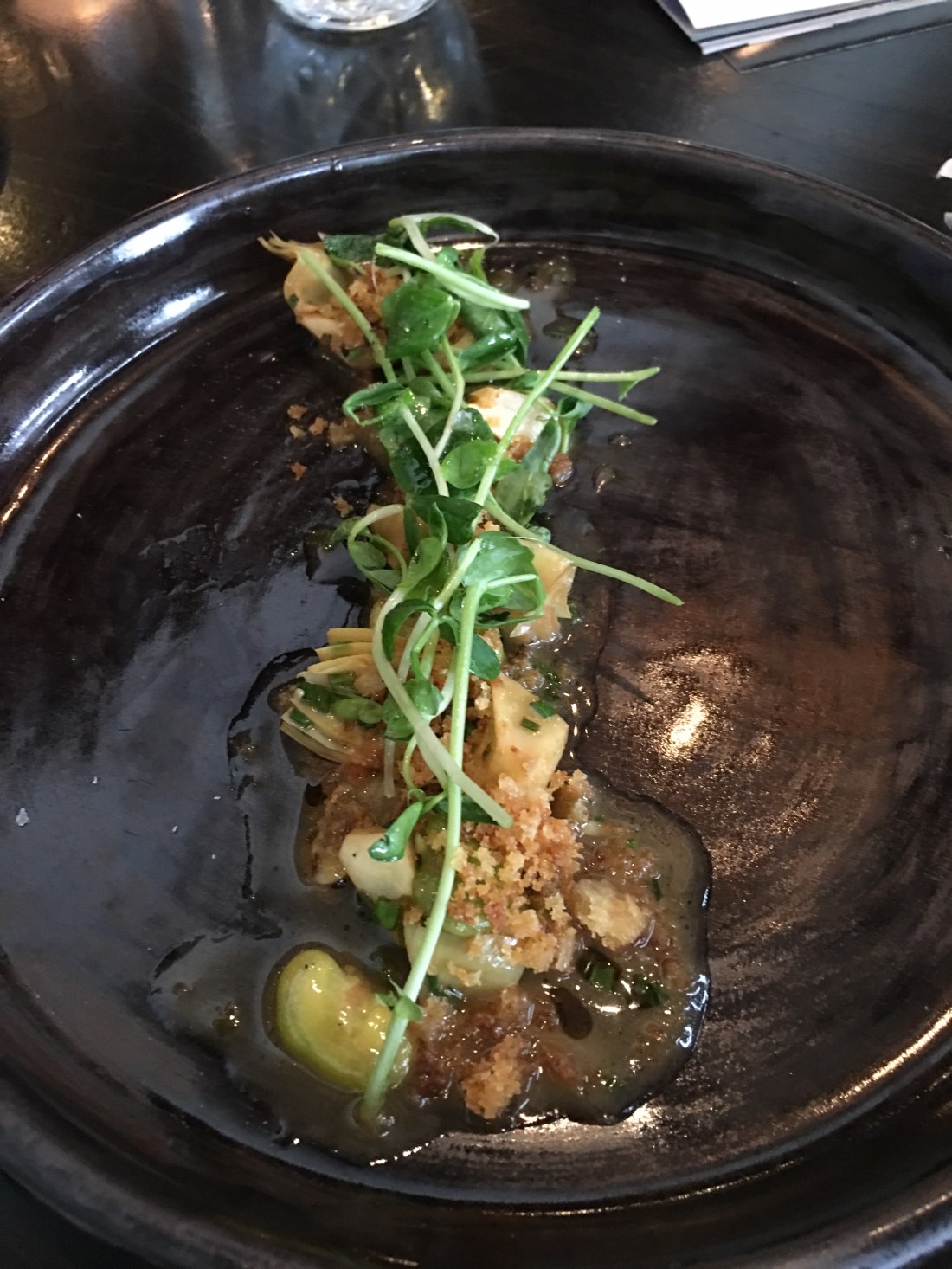 The main dish was the roasted whole fish (ocean bass) with kale, salsa verde, and chiles. The fish was deboned at table side by staff.(pictured).