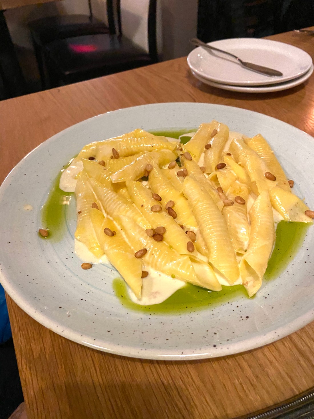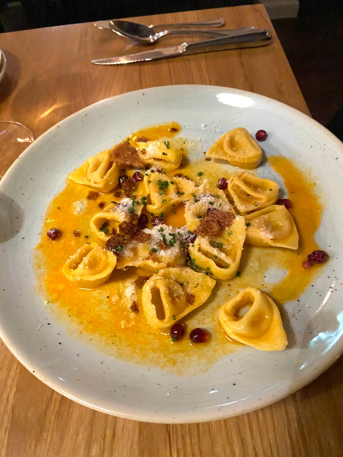 We then ordered Risotto, Garganelli, Tortellini, and Lasagna. The lasagna, which was the evening’s special, had great flavor but it wasn’t warm enough temperature-wise. The Tortellini with butternut squash was the best dish of the night. The Garganelli with butter and pine nuts was also a good pasta dish. The Risotto Cacio Pepe had too much cheese. The rice was lost.