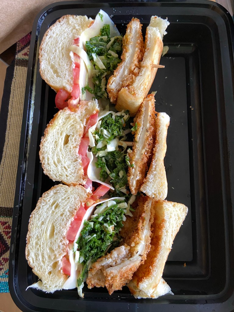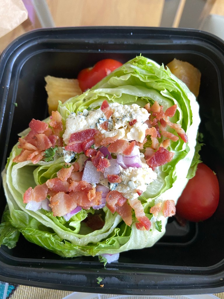 The three large halved artichokes have a delicious sauce. The iceberg wedge salad had extra bacon pieces and it was a delightful dish. The crispy chicken sandwich with a side of spicy coleslaw was a large three-piece sandwich ensemble that was enjoyed by all. Artichokes are the highlight of the meal as a signify spring and the coming summer in spite of the cold snow.