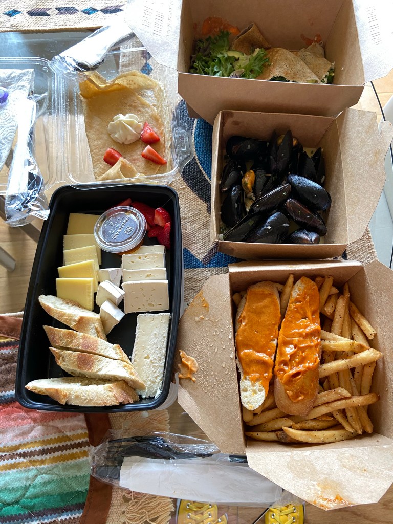 Le French Denver was founded by Senegalese sisters, who were raised in France. It’s open for breakfast, lunch, and dinner. We had a take away dinner meal consisting of a cheese plate (fromage), mussels (moules), vegetarian crepe, and a lemon crepe.