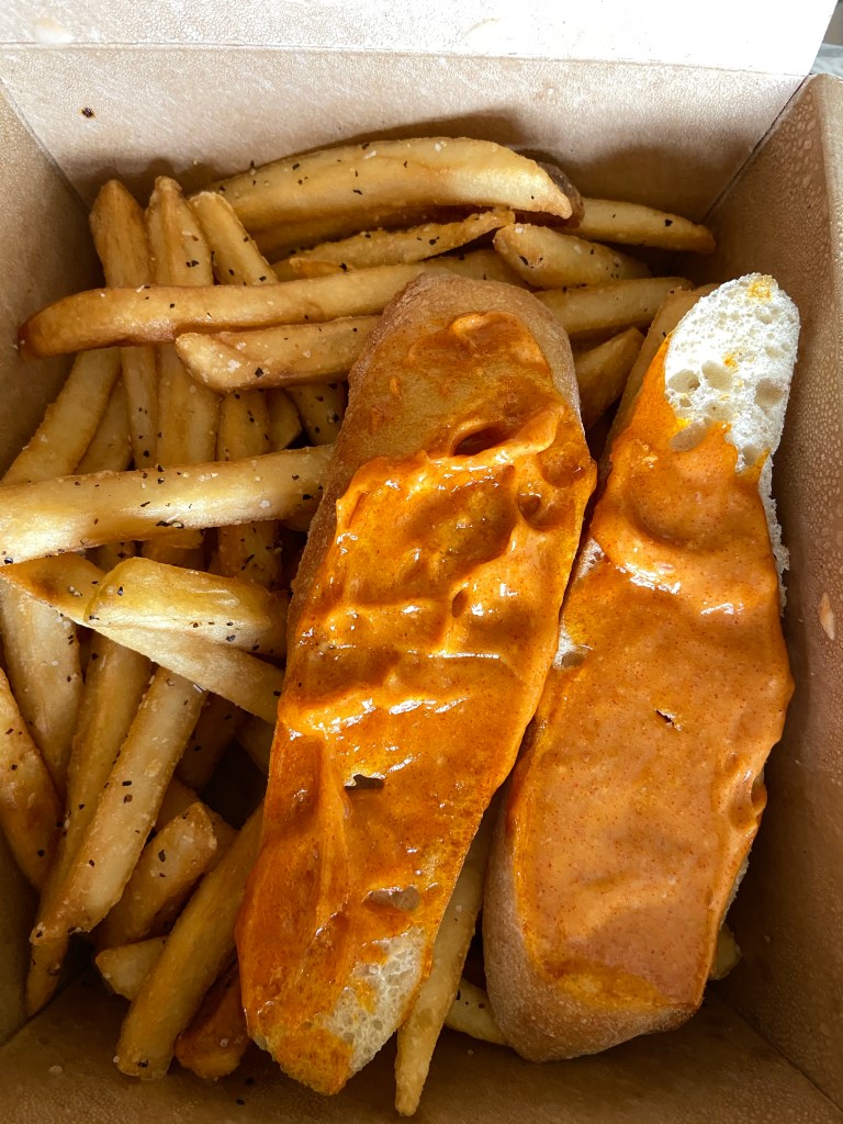Lastly, the Mussels are cooked in a wine and garlic broth and tasted great. A very large side of French fries was included with a baguette covered in a bright orange paprika aioli to help recover the broth. With the fries, it’s more than a meal.