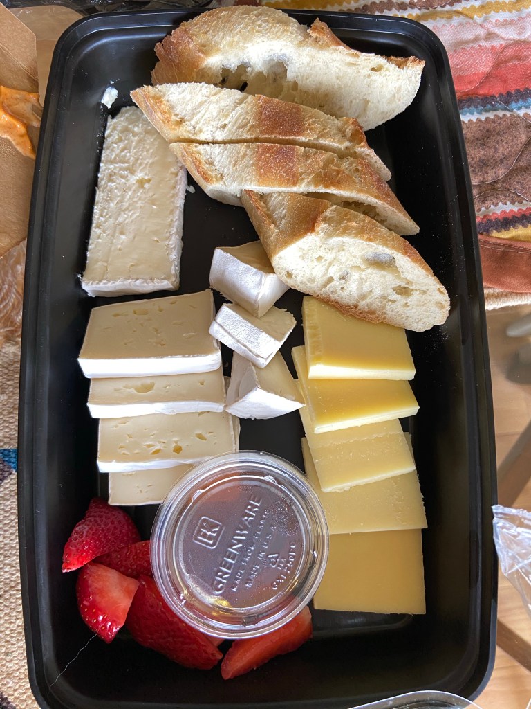 The Cheese Plate is large with several types of cheeses, bread, and Colorado honey. A great presentation even if it’s in a box to go.