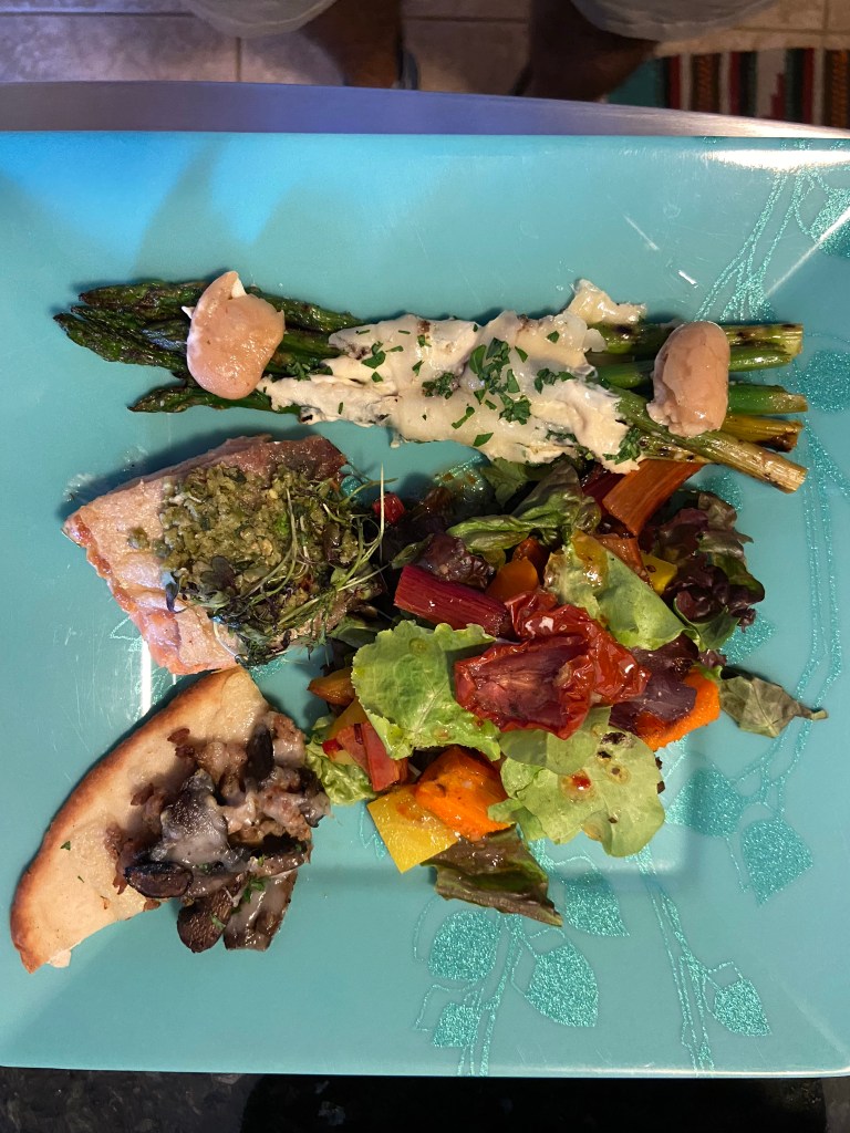 Our meal order was grilled asparagus, Flat Bread with the house-made sausage, and an entree of pan-seared Salmon. Mile High Dining added it’s own salad with roasted carrots and beets as Logan Street was temporarily out of salads.