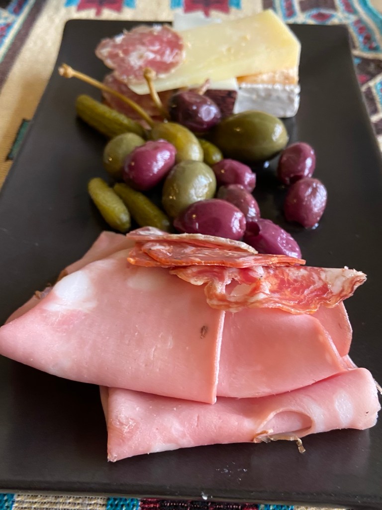 Let’s explore the food and try to forget the pick up issues. Our selections were the antipasti plate, green salad, eggplant parmesan, chicken parmesan. veggies, and focaccia bread.