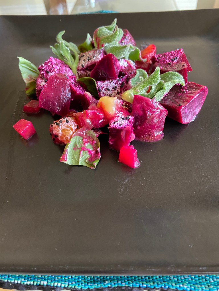 The beets had a terrific presentation and included pickled golden beets, citrus, sesame, and tarragon but it was missing the goat cheese. The red beets needed more roasting, their texture was a bit tough.