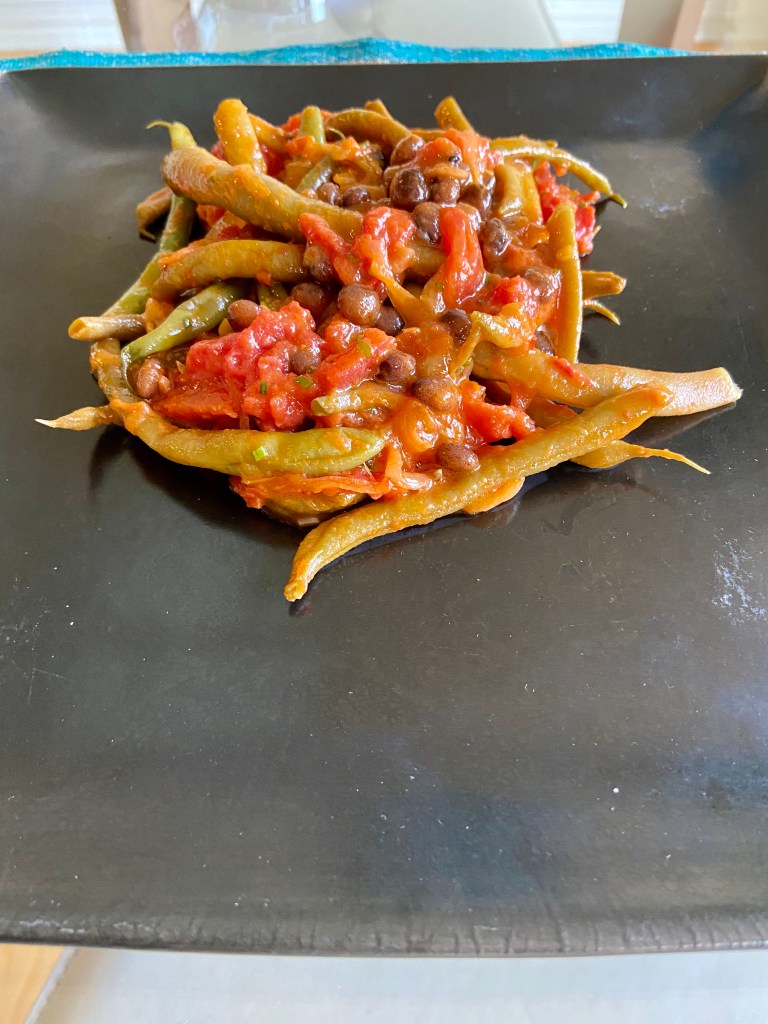 The tomato braised summer beans included green and yellow beans and lots of tomatoes. It was delicious as the tomatoes we’re slightly braised with a little spice. An excellent dish.