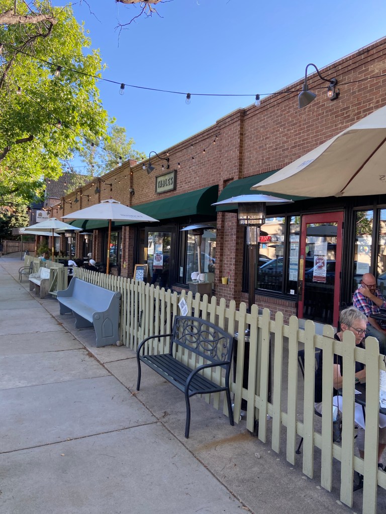 To celebrate Colorado Restaurant Day on 9-12, Mile High Dining went to Tables Restaurant. It operated by a husband and wife team, Amy and Dustin Barrett. This Park Hill restaurant features American cuisine with a lovely patio and a large tent for expanded outdoor seating. Mile High Dining enjoyed takeaway dinner #24. One orders by telephone and must wait till the restaurant opens at 5:00 pm. We ordered 5 dishes: Ricotta and jam, Grilled Peaches and Peppers, Seared Scallops, Sun Flower Farinata, and the Key Lime Tart.