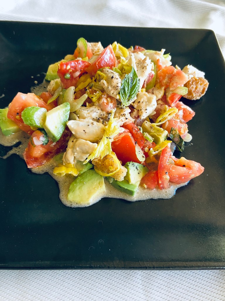 The spicy crab and avocado salad with marinated tomatoes, and croutons was spicy and delicious. The large pieces of crab were a great. Also, it was a very large-sized portion enough for three servings. It was voted as a co-favorite as the best dish of the evening.