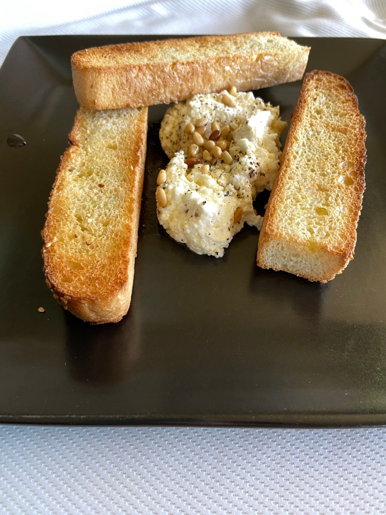 We selected 5 dishes: focaccia bread with ricotta cheese, tricolor salad, spicy crab and avocado salad, gnudi, and a chocolate cannoli.