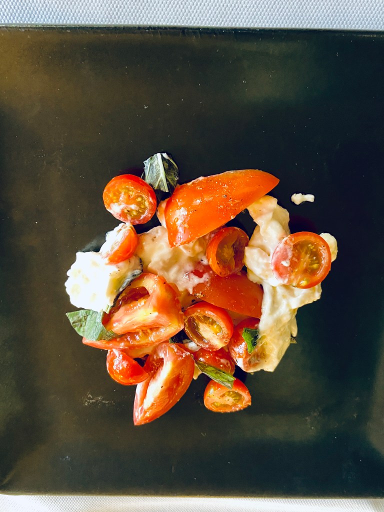 As for the food, first the Mozzarella and tomatoes. Great to look at but the tomatoes lacked good flavor. Definitely wintertine tomatoes. Next, the crispy cauliflower. It was a half of head of grilled or baked cauliflower with a side of bright orange pepper sauce and grapes. The cauliflower was undercooked making it hard to cut. The orange pepper sauce added a great flavor that helped save the dish.