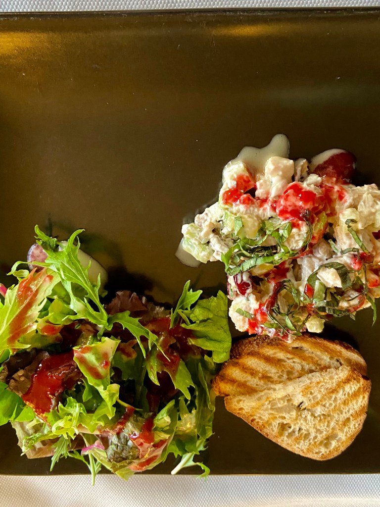 Lastly, the raspberry chicken salad with pecans, apples, and gorgonzola cheese was delicious. The extra raspberry sauce added a great sweet taste. It was the clear winner as the best dish of the evening.