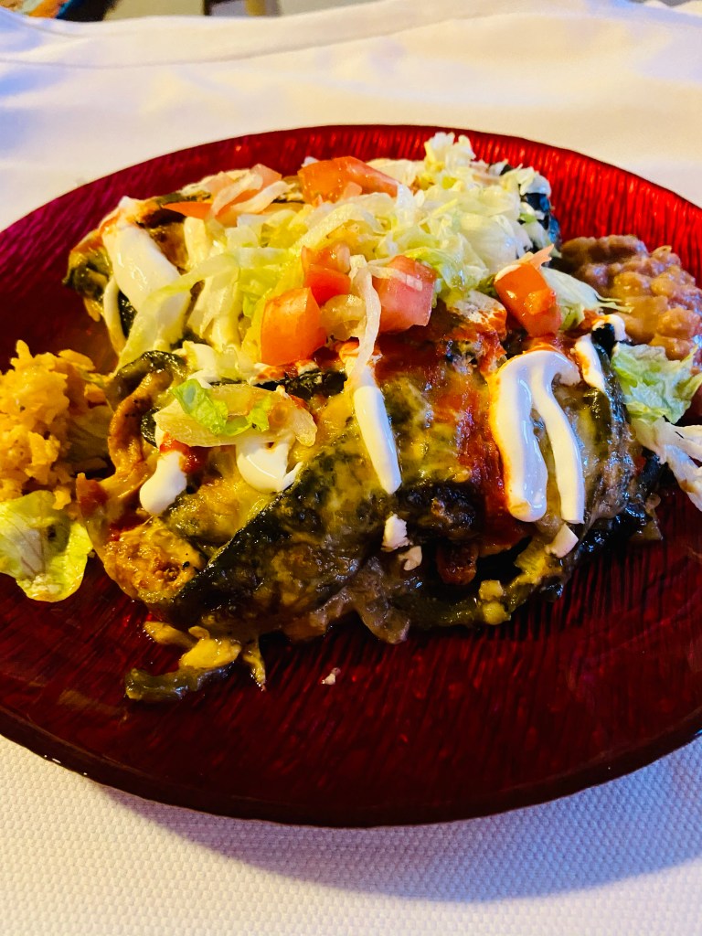 Our combo plate choice was the chicken enchilada and the chile relleno. Once again, a very large serving size. The enchilada is covered with cheese and had a good Mexican flavor. The relleno was saved for the next day!