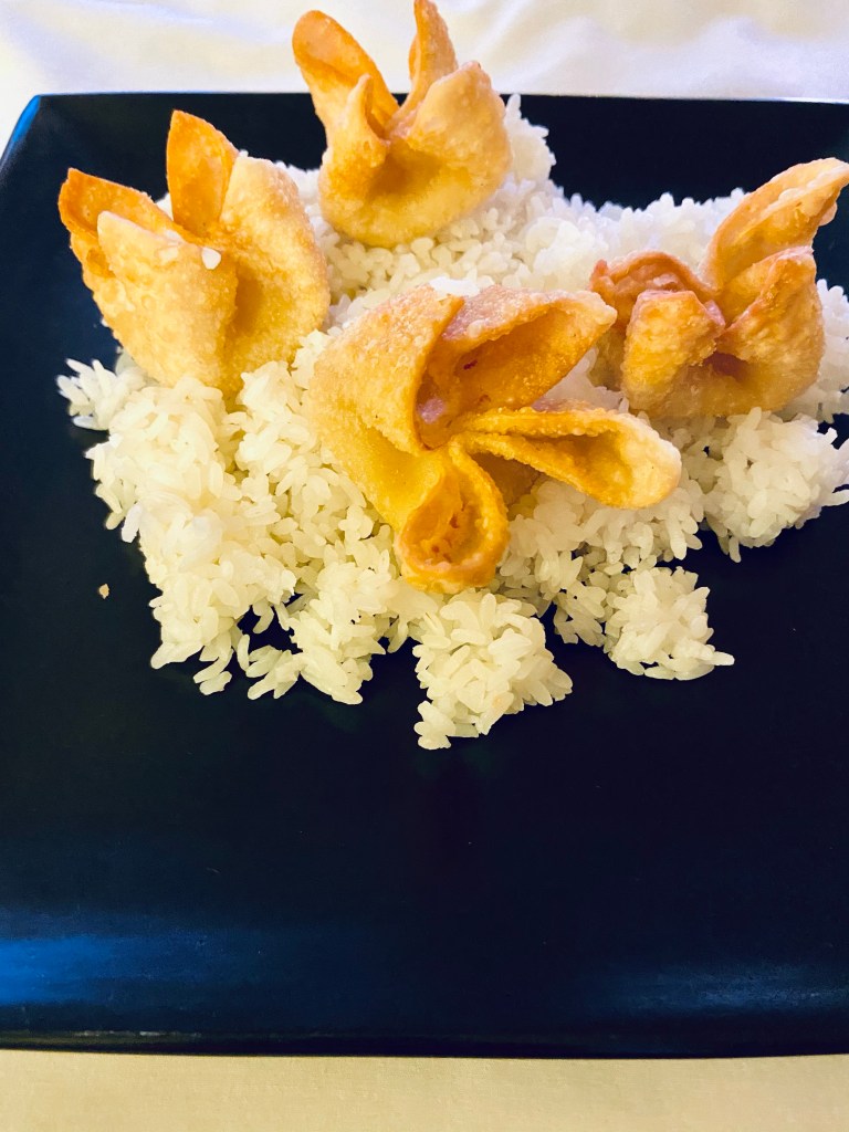 The crab rangoons were missing flavor. They were packaged in an open paper bag, so they were cold by the time we got home.