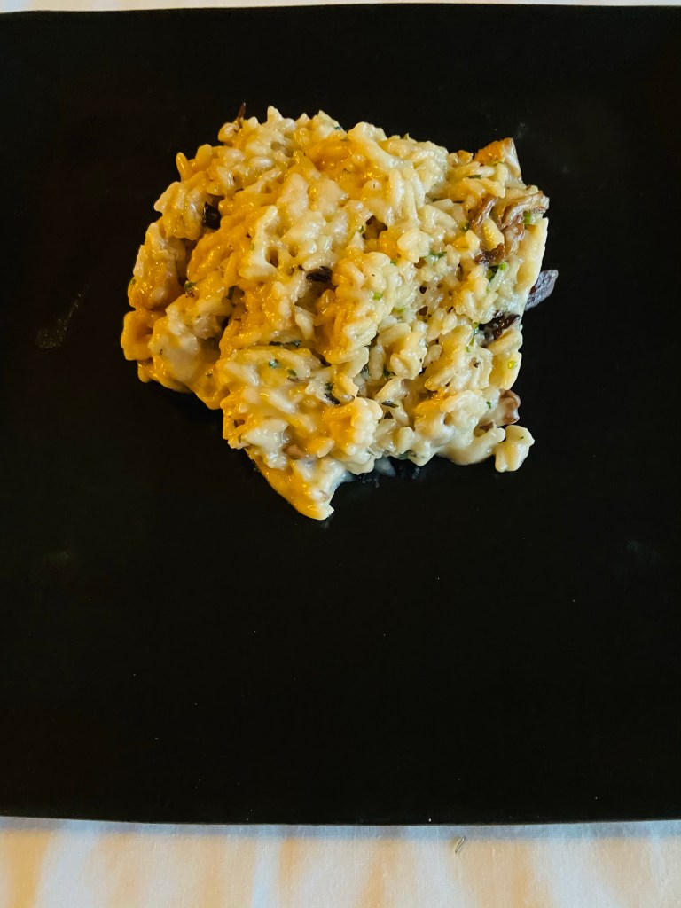 The risotto fungi was pushed into a very small paper container as while as the other dishes but when plated it made a very poor presentation. The rice congealed into a lump. Larger containers are needed! Secondly, it lacked lots of sliced mushrooms. This dish was disappointing.