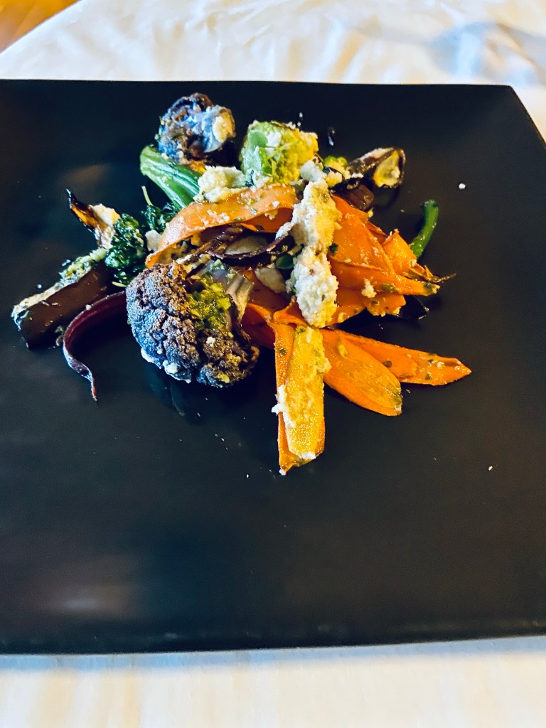 The grilled and roasted vegetables included carrots, cauliflower, eggplant, and broccolini. It looked great as the colors of the veggies made a great looking plate. It also tasted good.