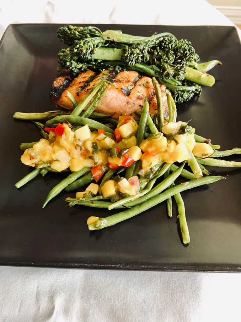 The 6 oz. grilled salmon with a side of green beans and broccolini was very good. The fish was crispy on the outside but tender inside. The veggies added a nice touch to the plate.