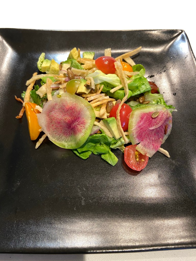 The house salad had a lettuce, avocados, watermelon radish, tomatoes, and peppers. It made a very good presentation and a great taste to match.