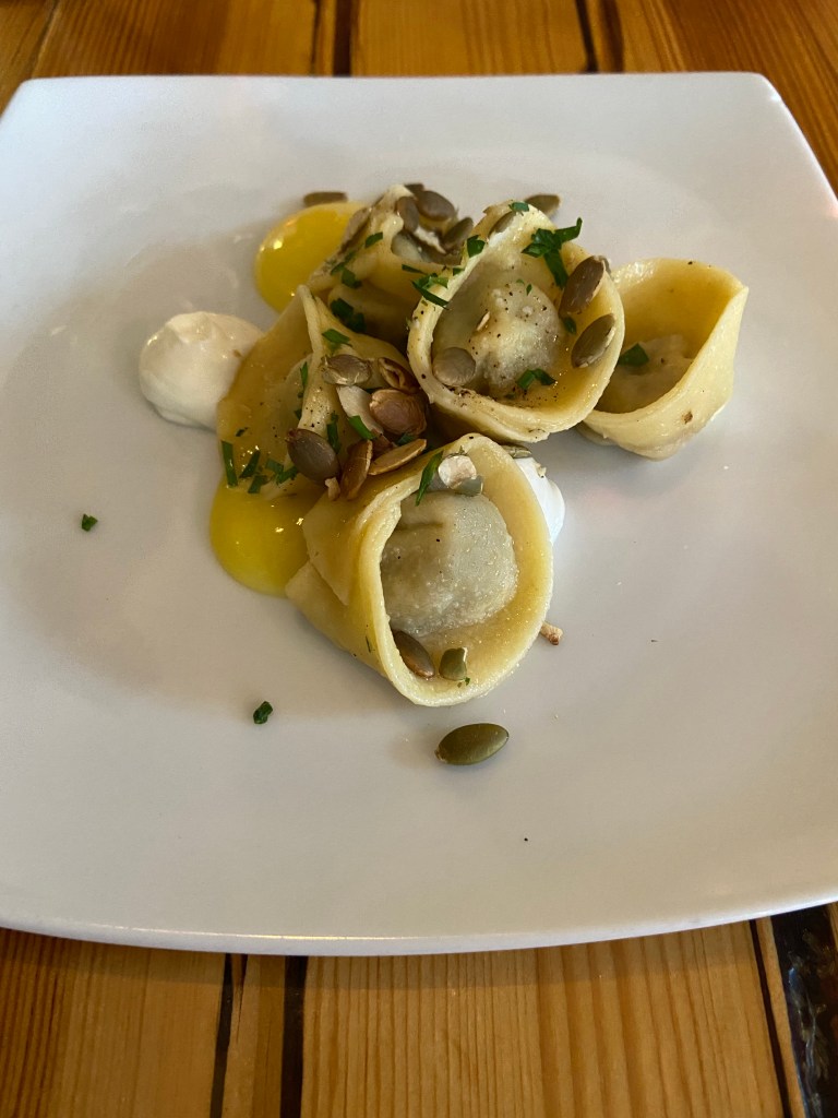 The third starter of tortellini filled with roasted zucchini in lemon curd were excellent. The pasta with a touch of lemon curd was delicious.