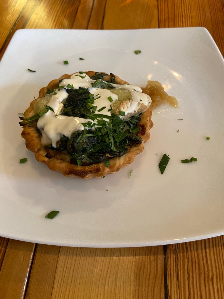 The last starter of the spinach tart with brie cheese and caramelized onion was a different style of a tart. The tart was presented at a very warm temperature that brought out the great flavor of the spinach and onions.