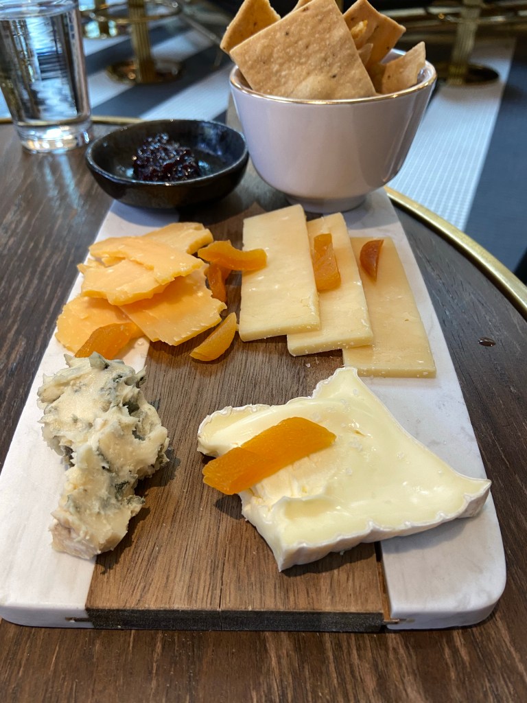 The cheeseboard had four different cheeses, house-made crackers, and a fruit compote including a delicious special blue cheese. The light crackers highlighted the flavors of the cheese.