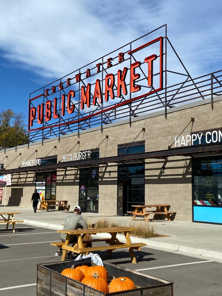 We enjoyed a beautiful fall Sunday morning brunch at the Edgewater Public Market recently. The market has 18 food and drink stalls ranging from ice cream to booze. It’s the largest food hall that we have visited. It would be a great place to take the family as everyone would have a choice of their favorite food. The city of Edgewater ranks as a leader for the number of marijuana shops per person and even some stalls sell soda spiked with hemp. We were there for the food.