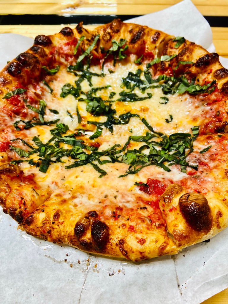 The other main brunch item was a cheese pizza from Tilford’s wood fired pizza. It’s a classic cheese pizza with extra basil and big enough for one. Rated good!