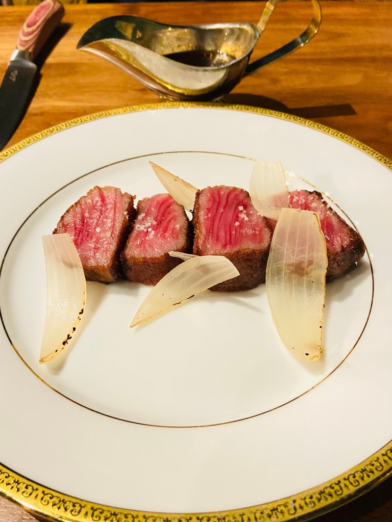 Next, we had the A5 Waygu steak. It just 4 ounces and it’s the softest steak we have ever eaten. These cows had to be treated and raised differently. It’s an excellent dish.