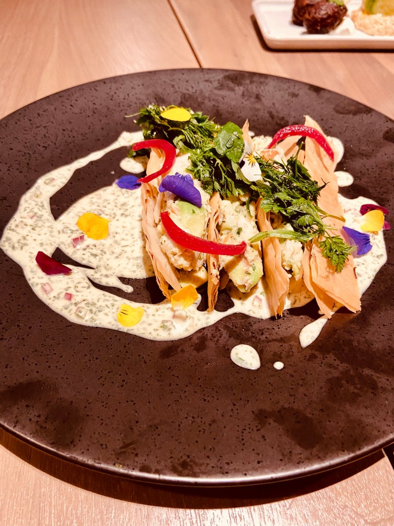 The trout ravigote (French for herb sauce) was an excellent starter. It has smoked trout, avocado, and herbs separated by layers of phyllo. The herbs and trout provide a delicious taste to start your meal.