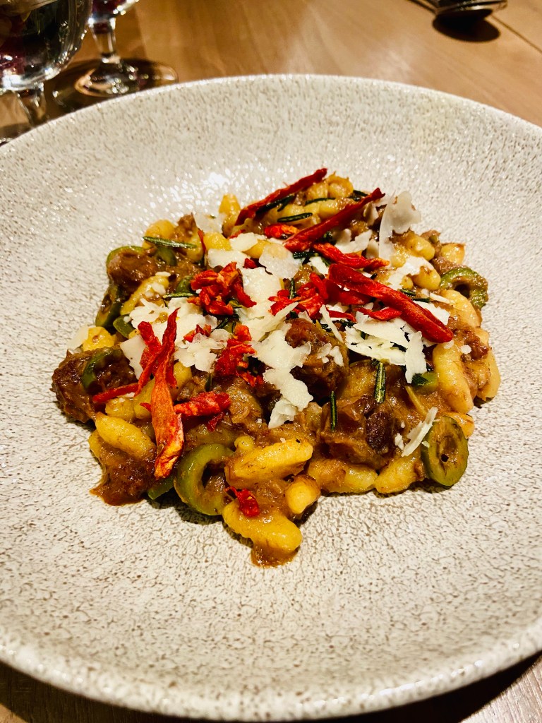 The one main entrée that was disappointing was the cavatelli. It was composed of small pasta with lamb sugo (red sauce), tomatoes, and rosemary. Sadly, the pasta was undercooked and tough.