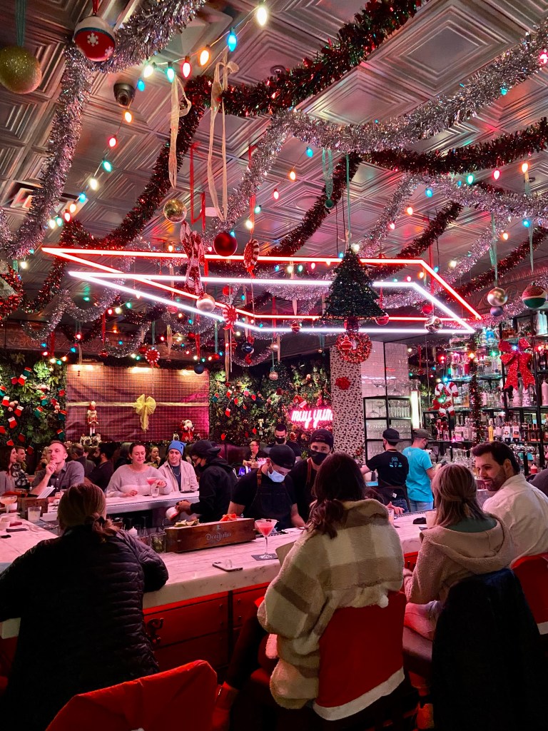 Mile High Dining found the most festive decorated bar the busy My Neighbor Felix, an upscale Mexican restaurant. They have lots of heated outside seating which surrounds the restaurant with some tables even having tiny open fire pits on the table. Once again, we were the oldest customers enjoying the evening.