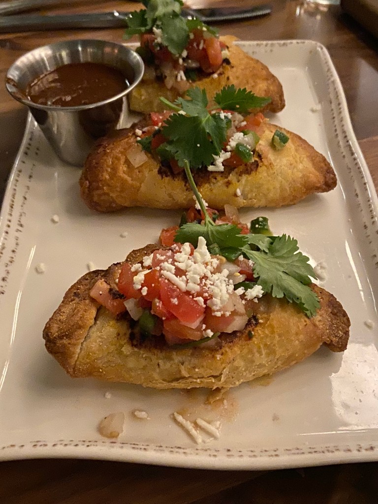 Next, the table had empanadas with the rotisserie chicken. They were served at a toasty warm temperature with a pulled chicken center. It’s a very good dish.