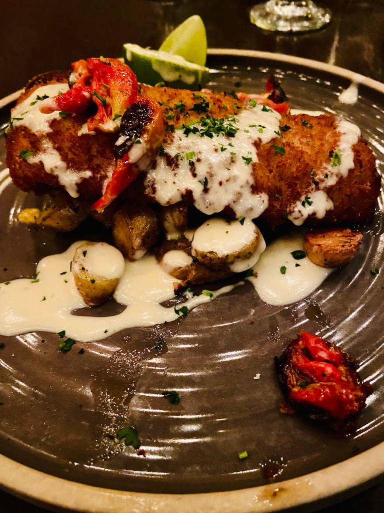 Mile High Dining went uptown to the Humboldt restaurant. It’s located in the space that housed the iconic Strings restaurant. It has a large number of seats, high tops and a dining room area. It has a large bar and it’s in a beautiful old brick restored building but it needs a little bit of extra color for the walls. We enjoyed the tail end of happy hour as we arrived five minutes early and had oysters at two dollars each and five-dollar glasses of wine. Not being the oldest customers as there was at least five other gray-haired folks eating out was refreshing.