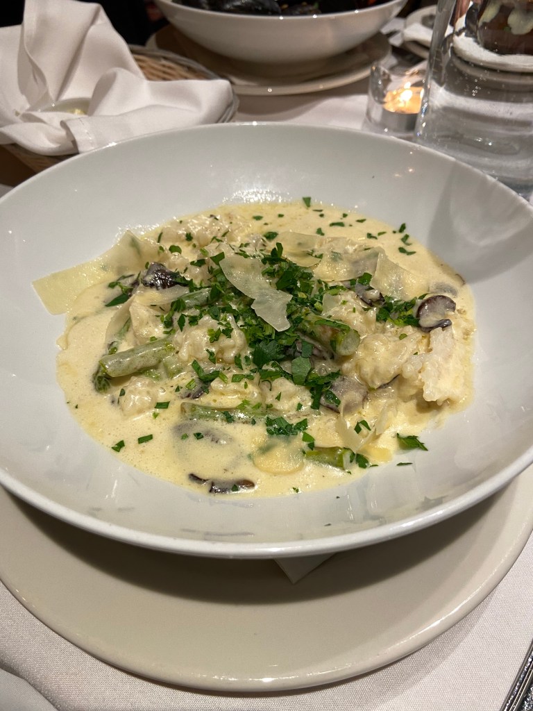 The other main dish was the chef’s dish of the day, a vegetarian bowl of different types of veggies with a light cream base. The asparagus with a touch of parmesan cheese was very good.