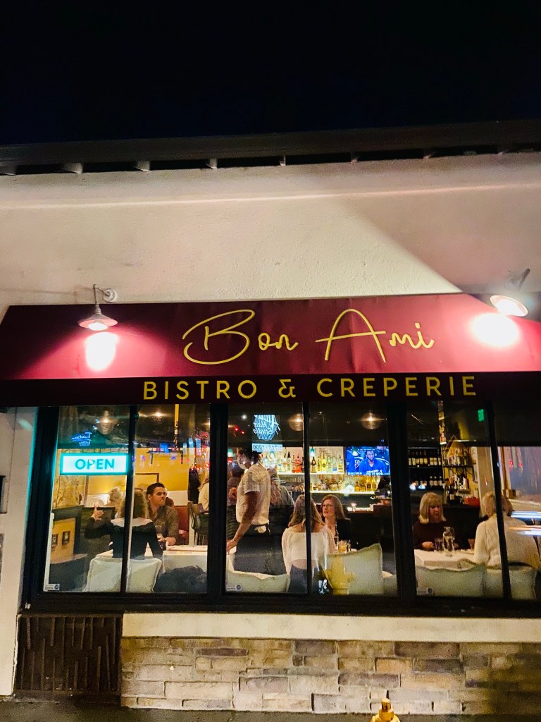 Mile High Dining went to charming French bistro, Bon Ami. We sat next to the open kitchen which is always good for a show. It’s located on a busy street but is well protected from the traffic noise. When warmer weather returns, we are looking forward to sit outside in the pretty patio area. The menu provides lots of options including crêpes and other classic French dishes.