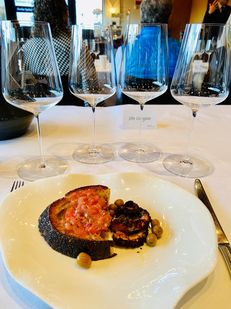 Mile High Dining attended the Instituto Frasca per il Vino about Spain and Portugal wines. It’s a very serious and expensive review of the wine history of the countries and the hidden gems of wine. It was led by the Frasca team of Bobby Stuckey and Carlin Karr. We tasted 11 different wines. The class had 30 participants. Besides a large tv screen projecting each topic, we received a booklet covering the history and the wines. No Porto please!