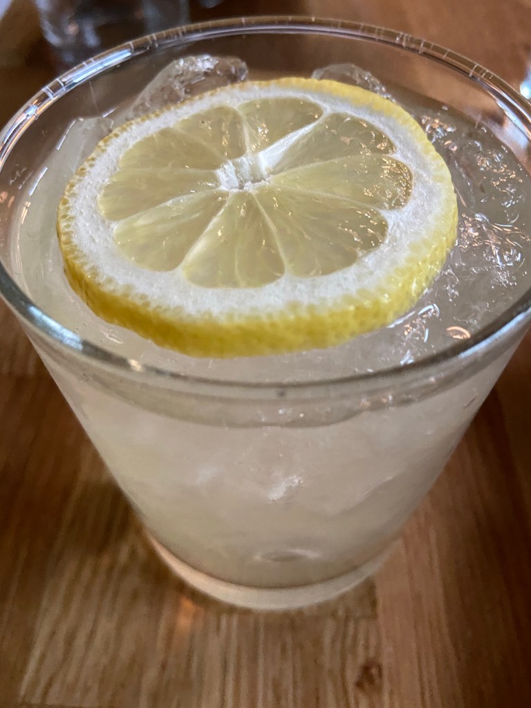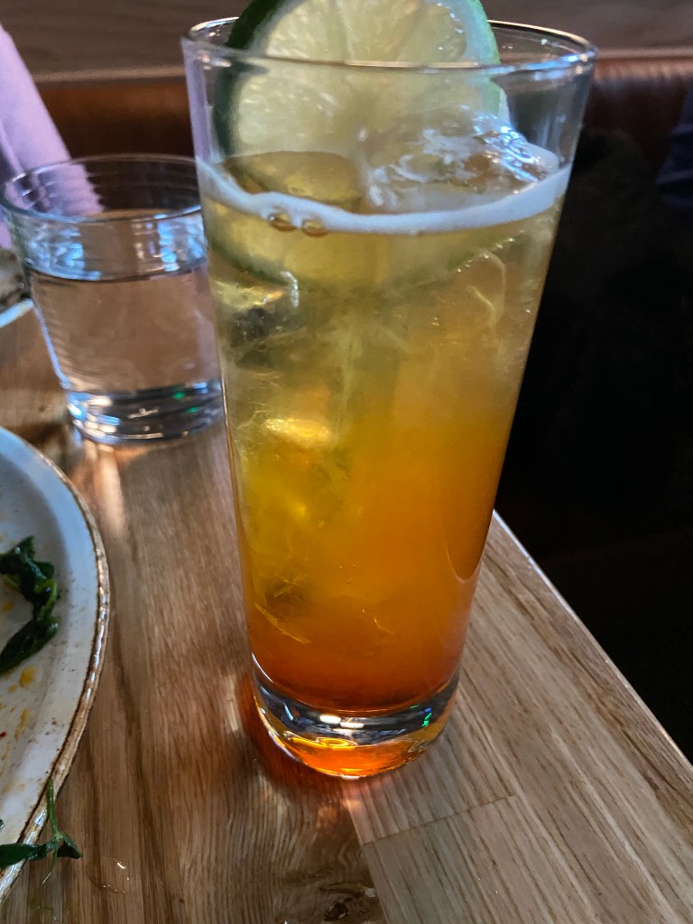 We finished the evening with dessert which was the warm strawberry sesame cake sitting on a ricotta cheese base. It’s not a sweet dessert at all and one had a rhubarb nonalcoholic drink with seltzer and lemon which was delicious and the other a mint tea.