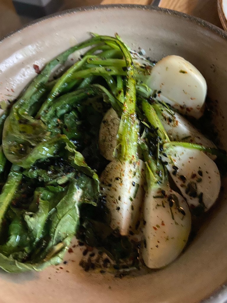 The turnips were paired with hazelnuts and a mild horseradish. It’s the first time I’ve ever seen turnips as a dish on a menu but it was very good.